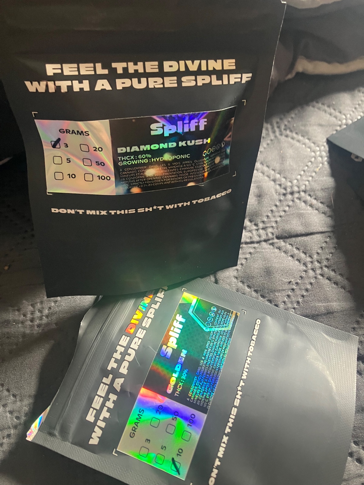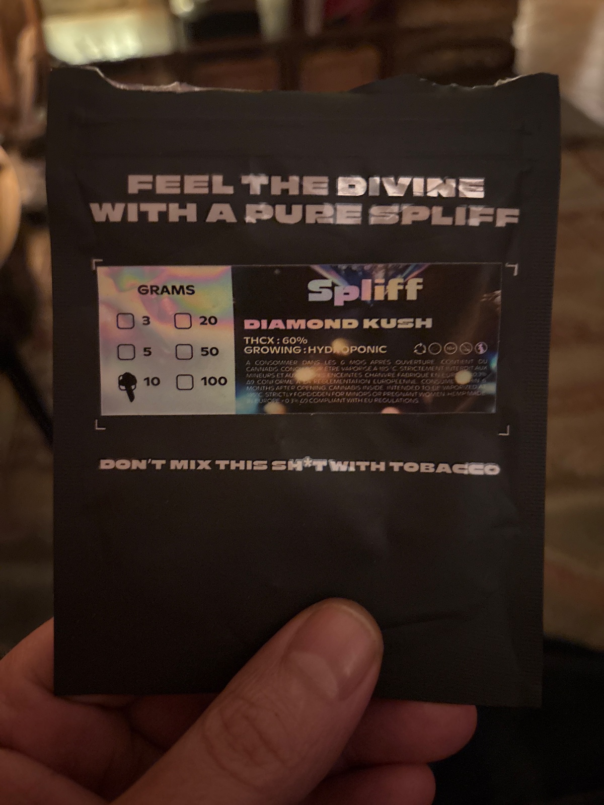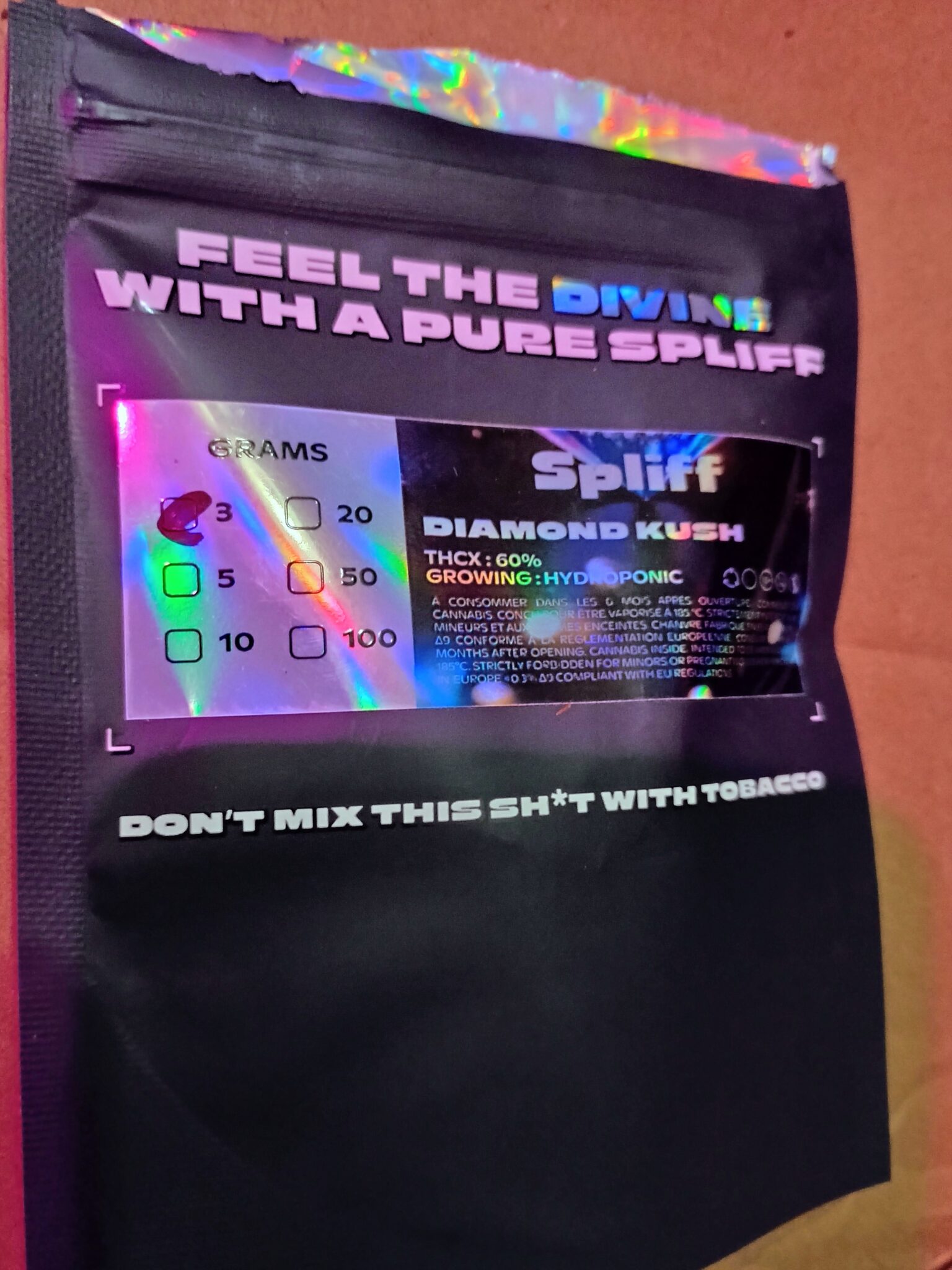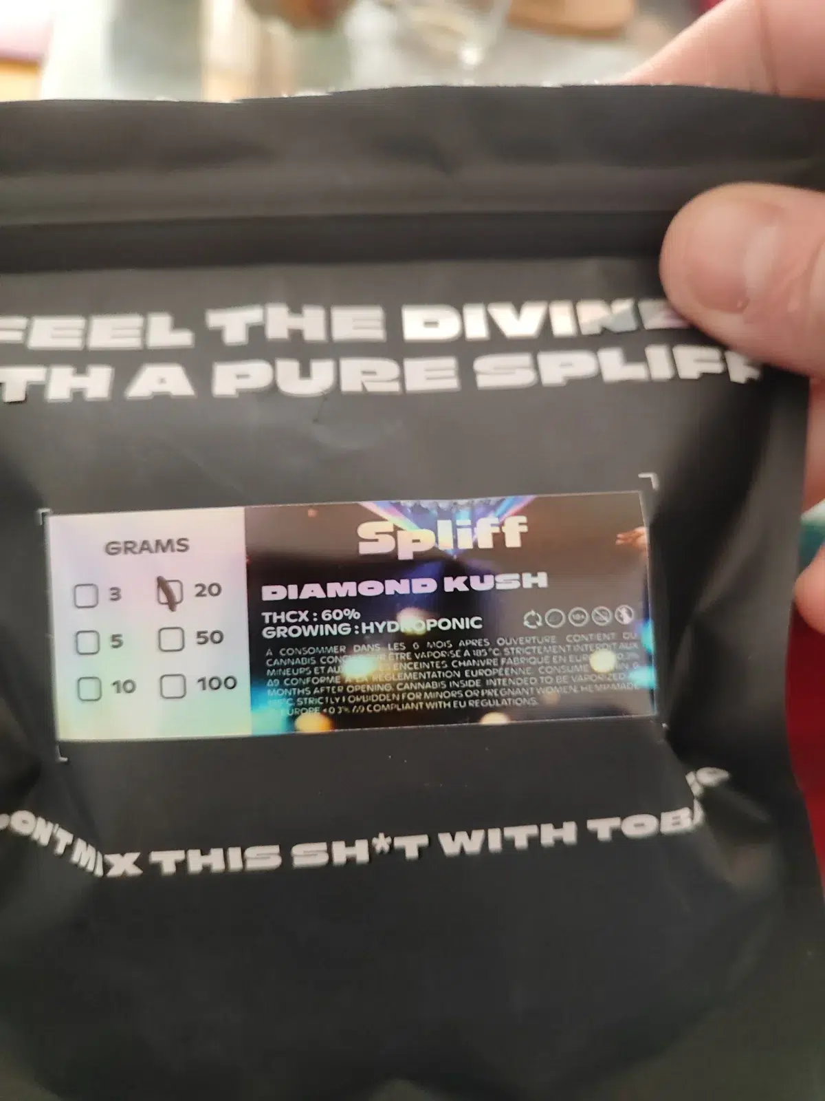 Die Diamond Kush THCX ist ein echtes Juwel . Diese hydroponisch angebaute Blüte überzeugt mit dichten, funkelnden Buds . Reife Früchte und Kiefer in der Nase, mit 60% THCX für ein besonders intensives High ✨.