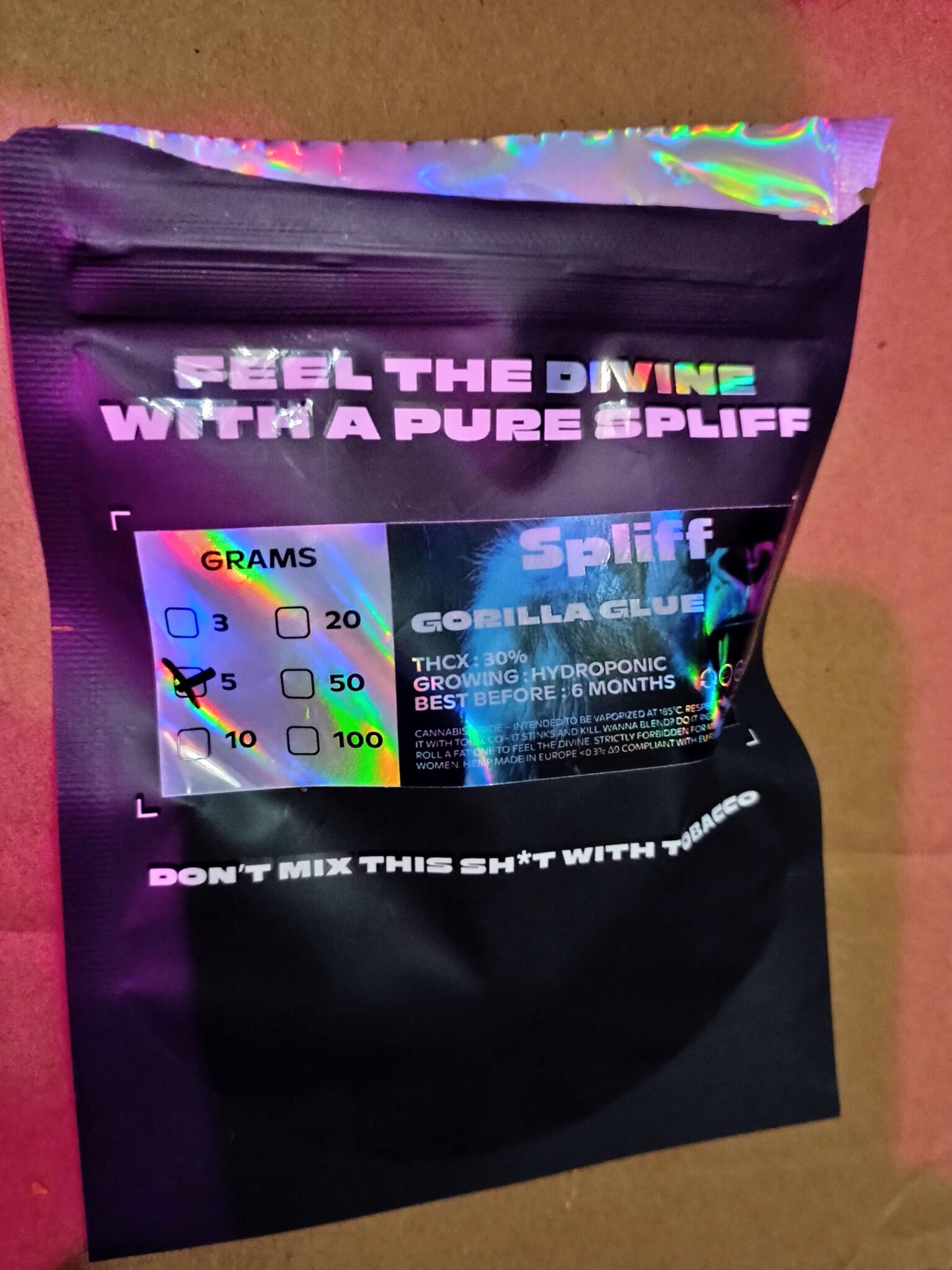 Die berühmte Gorilla Glue THCX ist ein echtes Biest, voller Geschmacksrichtungen, die in Ihrem Mund explodieren. Die einzigartige Mischung aus spritzigen Zitrusaromen und harzigem Kiefernholz versetzt Sie in einen Wald nach einem Sommerregen . Achtung: Mit 30 % THCX ist diese Blüte sehr kraftvoll.
