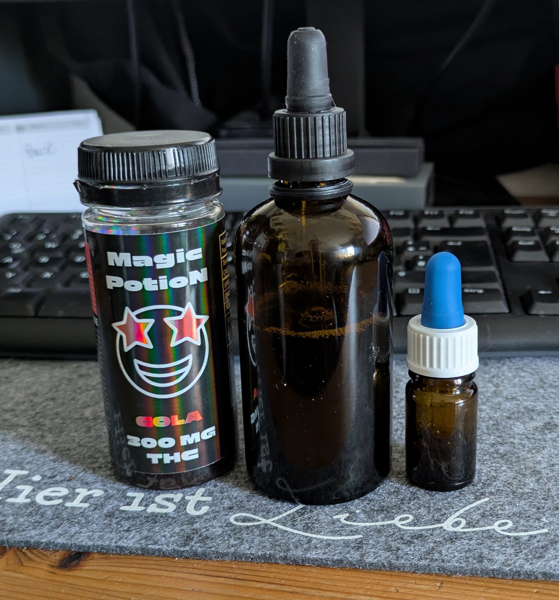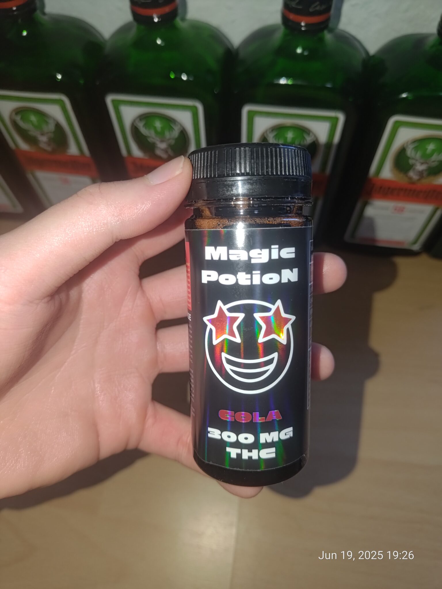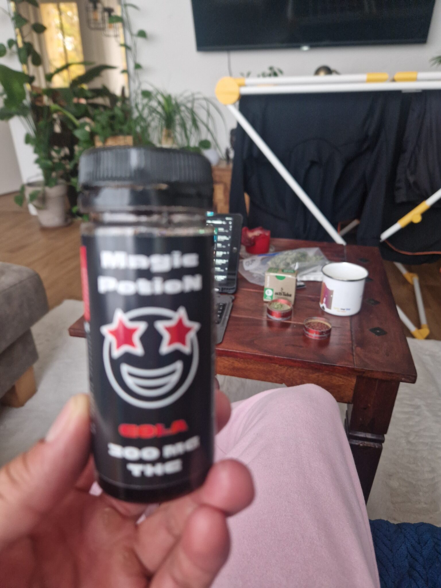 Super Produkt. Ich brauche generell „viel“ um ordentlich was zu merken. Wenn ich die halbe Flasche in ein Getränk der Wahl mische, dann bin ich super angenehm und positiv Ultra breit!